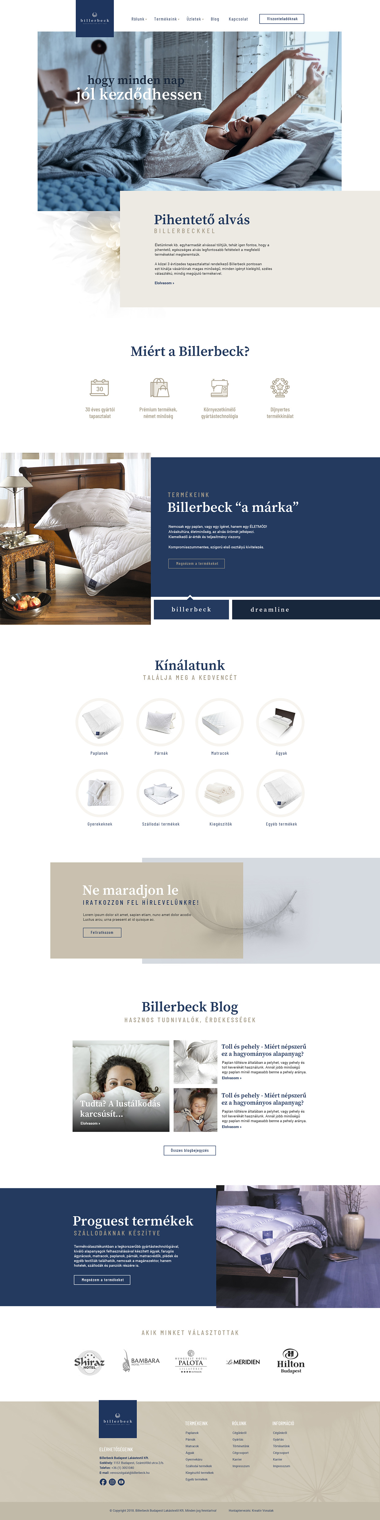 Megtisztelő feladatunk volt újragondolnunk a márka internetes jelenlétét. Egy korábbinál sokkal átláthatóbb, modern, magazinszerű oldalt terveztünk. Természetesen fontos szerepet kaptak rajta a részletes termékleírások, többféle termékcsaládot is megismerhetünk az oldalon keresztül. Tájékozódhatunk a márkaboltokról és nyitvatartásukról, és az országos viszonteladói hálózatról. A kollégákat is megismerhetjük fotókon keresztül, a kialakított blog részben pedig a jó alváshoz kaphatunk tippeket.