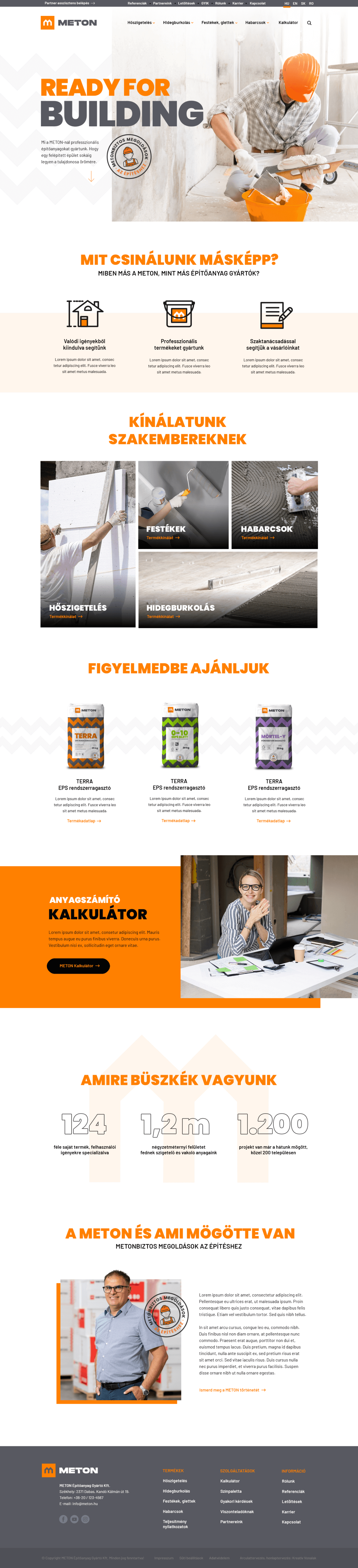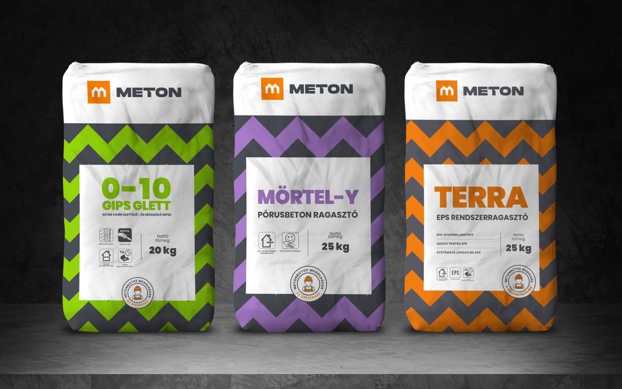 A Meton egy komoly, építőipari alapanyagokat gyártó vállalat, aki nem fél az innovációtól. A kínálatot elsősorban a szakembereknek fejlesztették ki, ezért mi is ehhez a szinthez mérhető professzionális, modern arculatot terveztünk a szintén METON név alatt forgalomba kerülő termékeknek.