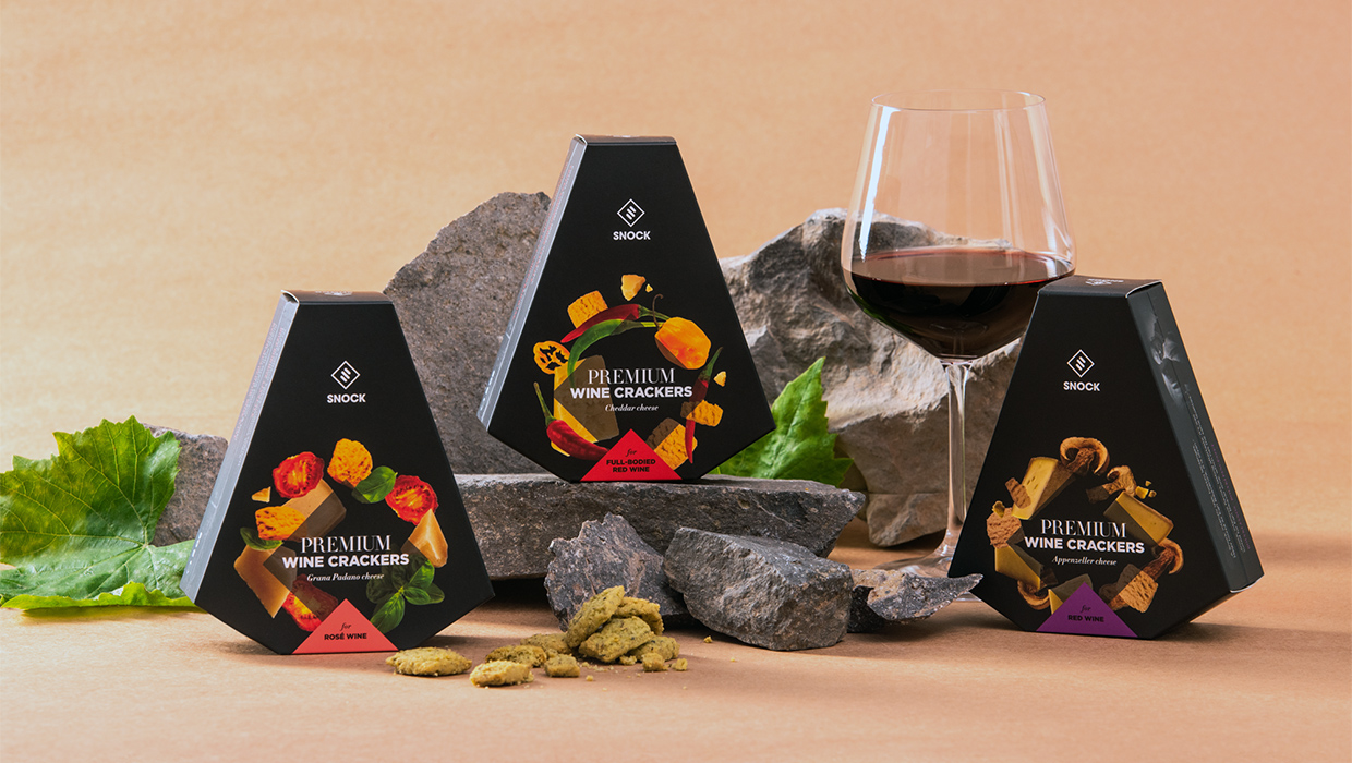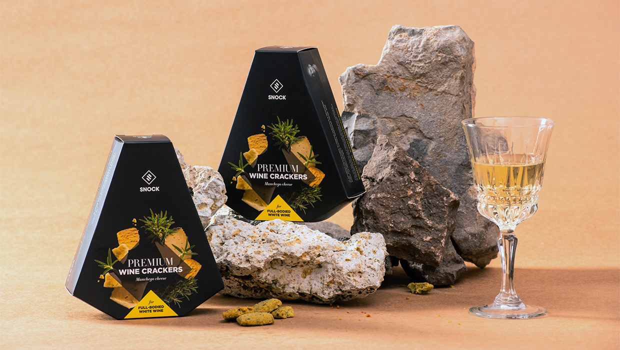 A Snock az első prémium sajtos snack, mely kifejezetten a minőségi borfogyasztás kísérője. A snack kizárólag természetes alapanyagokból, kézzel készül, olyan különleges hozzávalók felhasználásával mint a Manchego juhsajt, a vargánya gomba vagy a Grana Padano sajt.
