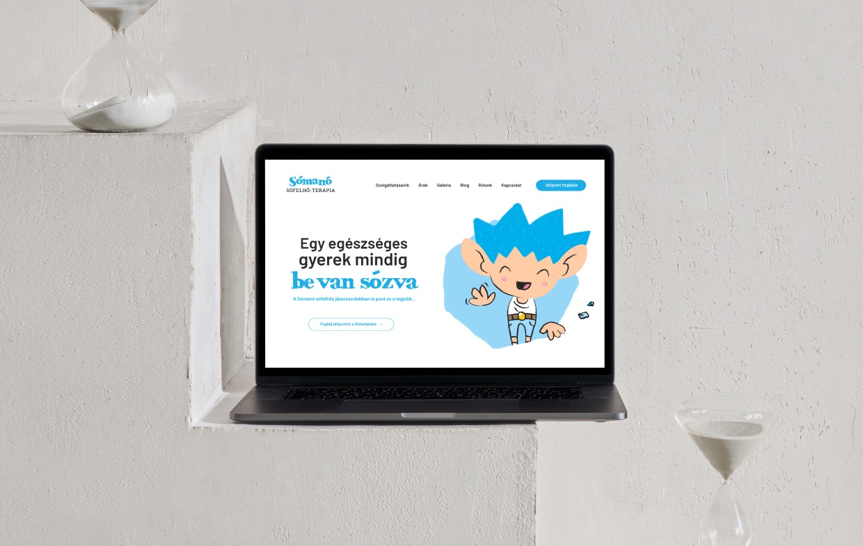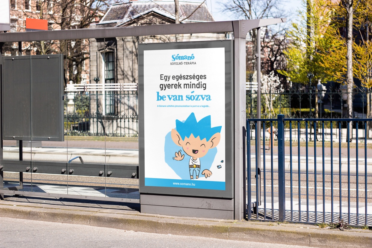 A Sómanó karakter mostantól élénkebb, játékosabb rajzstílusban jelenik meg, kék hajával, nagy fülével és szertelen mosolyával azonnal elnyeri a gyerekek (és szülők) szimpátiáját. A vizuális megújulás nem csupán az illusztrációt érinti, hanem a teljes márkamegjelenést: a kisarculati elemektől a várótermi grafikákon át egészen a plakátokig minden felületen egy letisztult, de karakteres és vidám világ fogadja a látogatót.